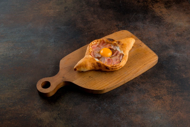 Хачапури с яйцом, беконом и карамелизированным луком
